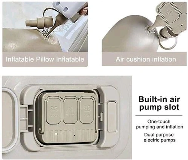 - Built-In Pump for Fast Inflation and Deflation: Save time and effort with the convenient built-in pump that inflates or deflates the mattress in just minutes. No need for separate equipment—set up is hassle-free, whether you're indoors or outdoors.