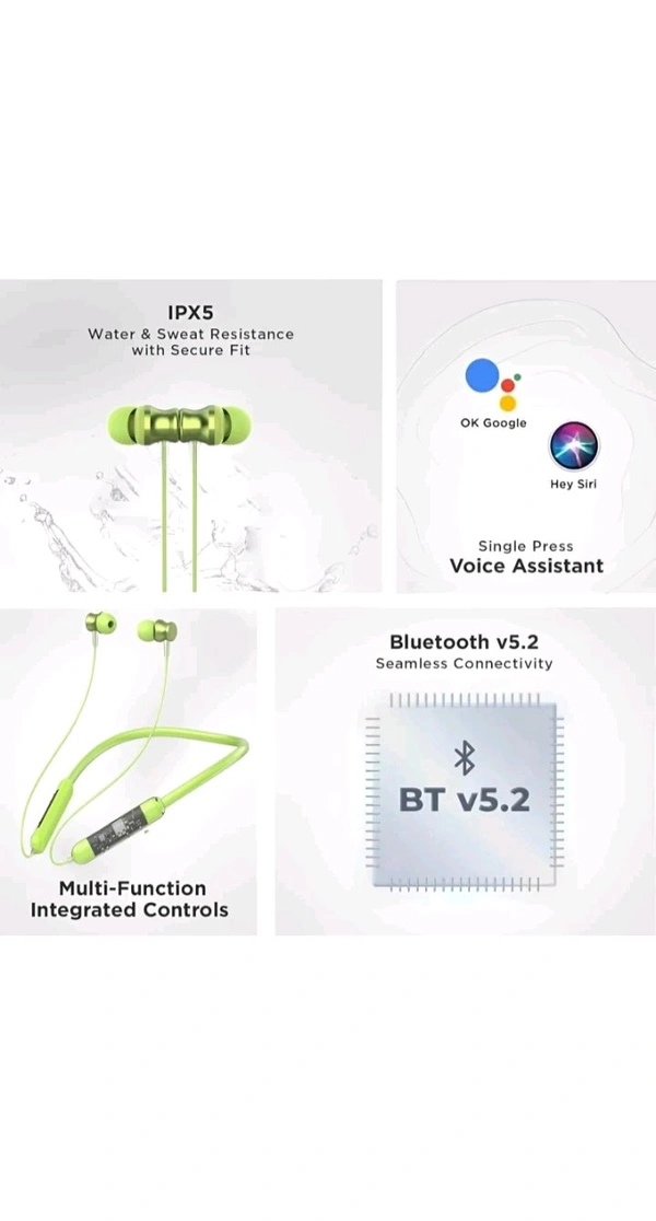 Transparent Bluetooth Neckband ANC, IPX7 Waterproof, USB-C,Long Battery, DeepBass Bluetooth Headset (Green, In the Ear)